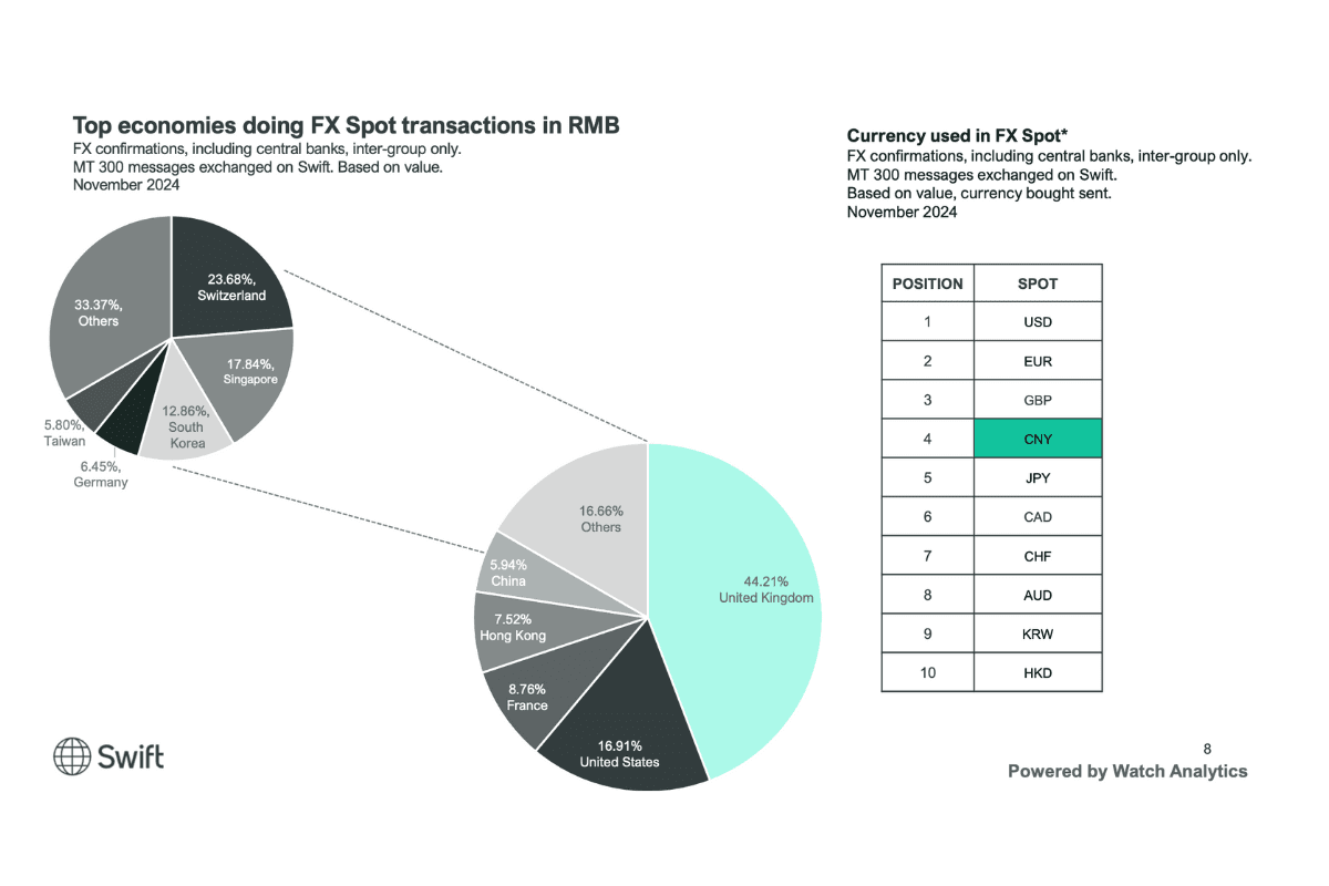 Yuan SWIFT payments hit 3.89% in November 2024, overtaking the yen