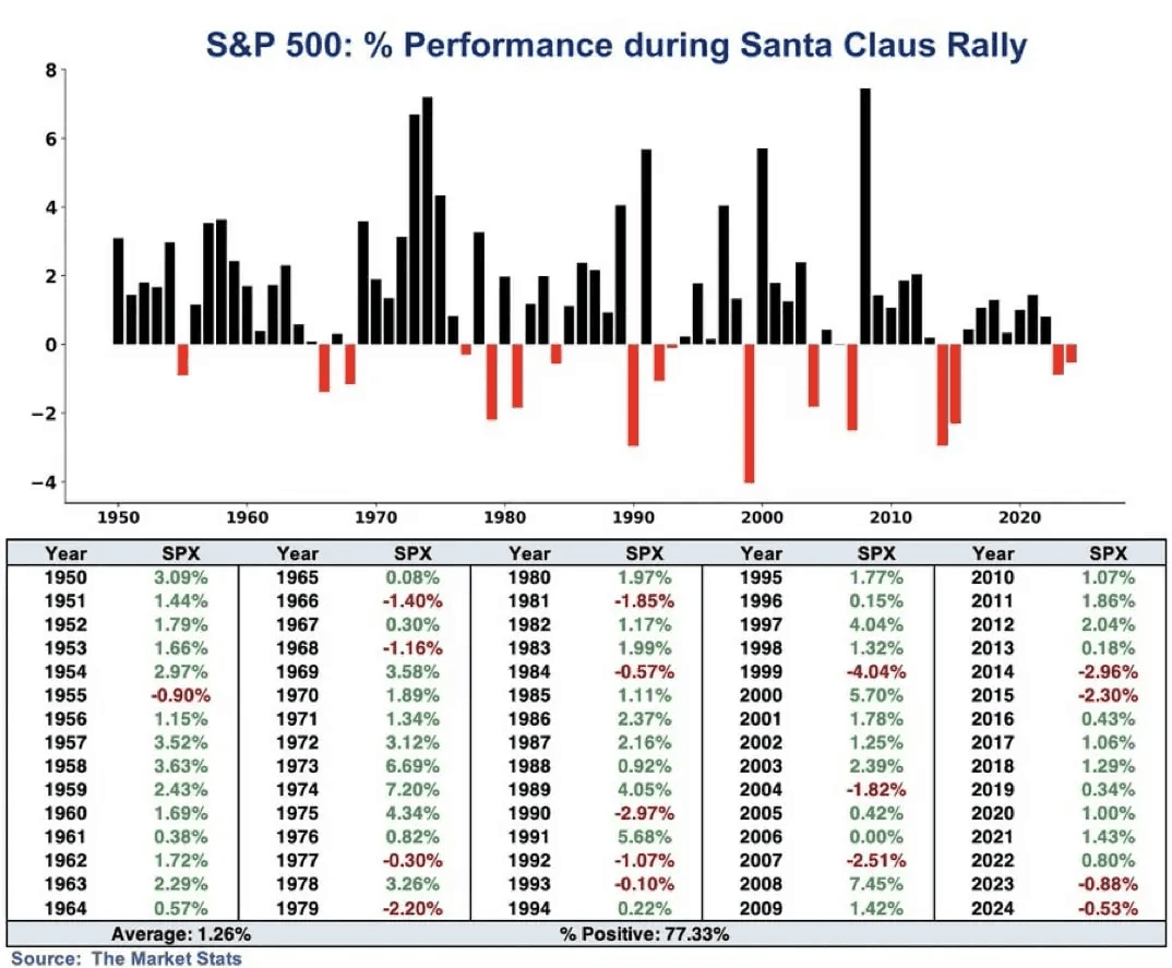 The result? A textbook Santa rally playing out exactly as historical patterns predicted.