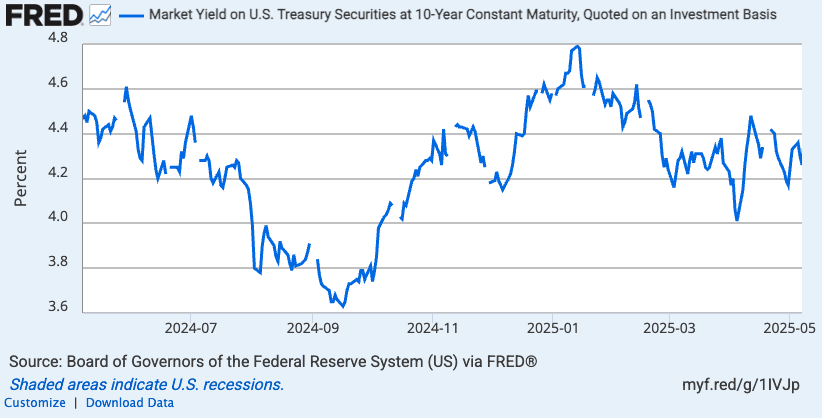 Charles Schwab projects 10-year yields will stay in the 3.75-4.5% range through 2026, but admits "there is a risk they will move back up toward 4.5% at times." That's Wall Street speak for "we have no idea, but we're worried."